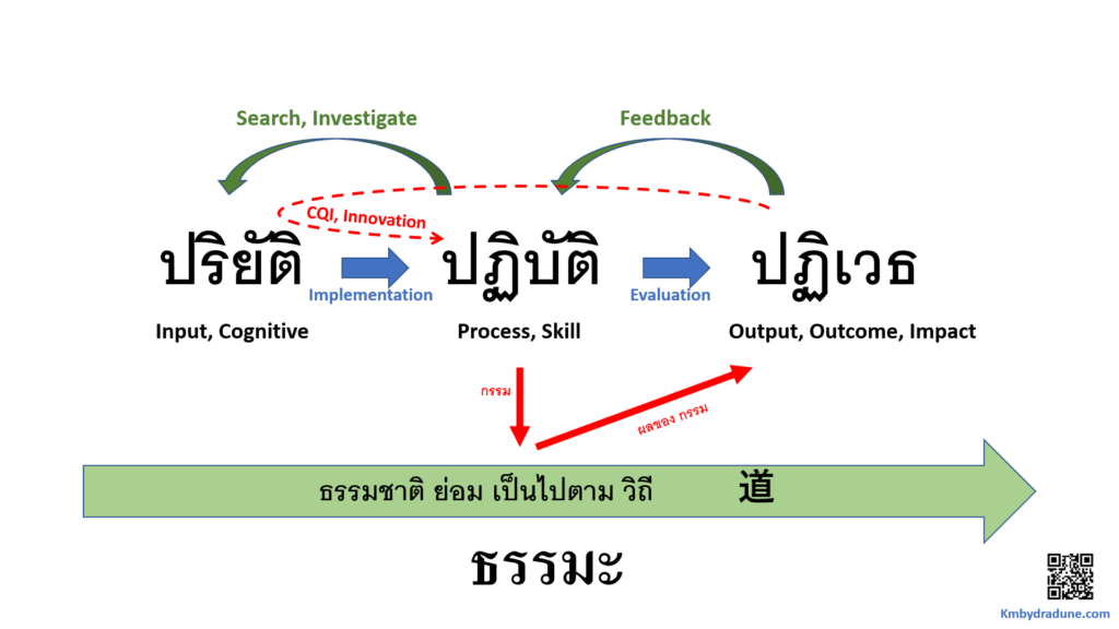 -ธรรมะ สอนเรา ว่า สิ่งที่เรากระทำ อย่างเป็นระบบ เพื่อตอบสนองสิ่งต่างๆให้ดีขึ้น มี 3 ระดับ คือ ปริยัติ ปฏิบัติ และ ปฏิเวธ … ซึ่งพอ เป็นภาษาพระ ภาษาบาลี ทำให้หลายคนรู้สึกว่า เข้าใจยาก .. แต่ในความจริงแล้ว คือ แก่น คือ เคล็ดวิชา ซึ่ง จำง่าย และ อธิบาย ทุกสิ่ง ที่จำเป็น สำหรับ การพัฒนา ไปในทางที่ดี ที่ถูก -ต้องใช้ภาษาฝรั่ง มาอธิบาย คนยุคใหม่ ถึงเข้าใจ -ทุกสิ่งนั้นเกิดแก่เหตุ และ ธรรมะ หรือ ธรรมชาติ ย่อมเปลี่ยนแปลงไปตลอดเวลา ขึ้นอยู่กับ เหตุ ที่มากระทำ เมื่อมีการกระทำ ก็มีผลของการกระทำ และ ทำให้ ธรรมชาติ นั้นเปลี่ยนไป […]