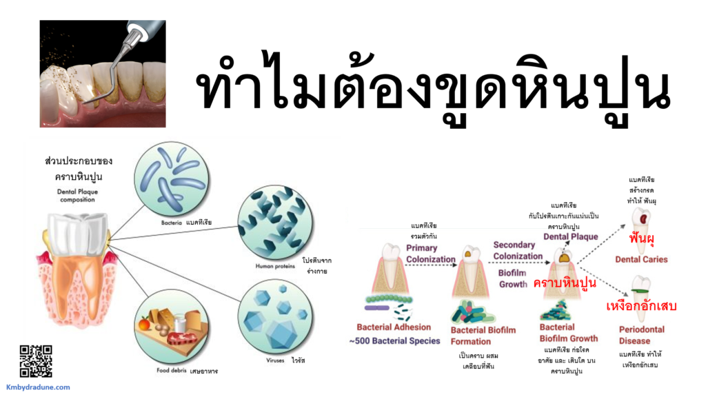 -คราบหินปูน เป็นสิ่งที่เกิดตามธรรมชาติ….. ในช่องปาก ของเรามี แบคทีเรียพื้นถิ่น (เจ้าถิ่น) ที่ไม่ก่อโรค ไม่เป็นอันตรายกับร่างกายเรา จะคอยช่วยย่อยสลาย เศษ อาหาร ที่หลงเหลืออยู่ ไม่ให้เน่าเปื่อย จนเป็นอันตรากับ เหงือกและฟันของเรา