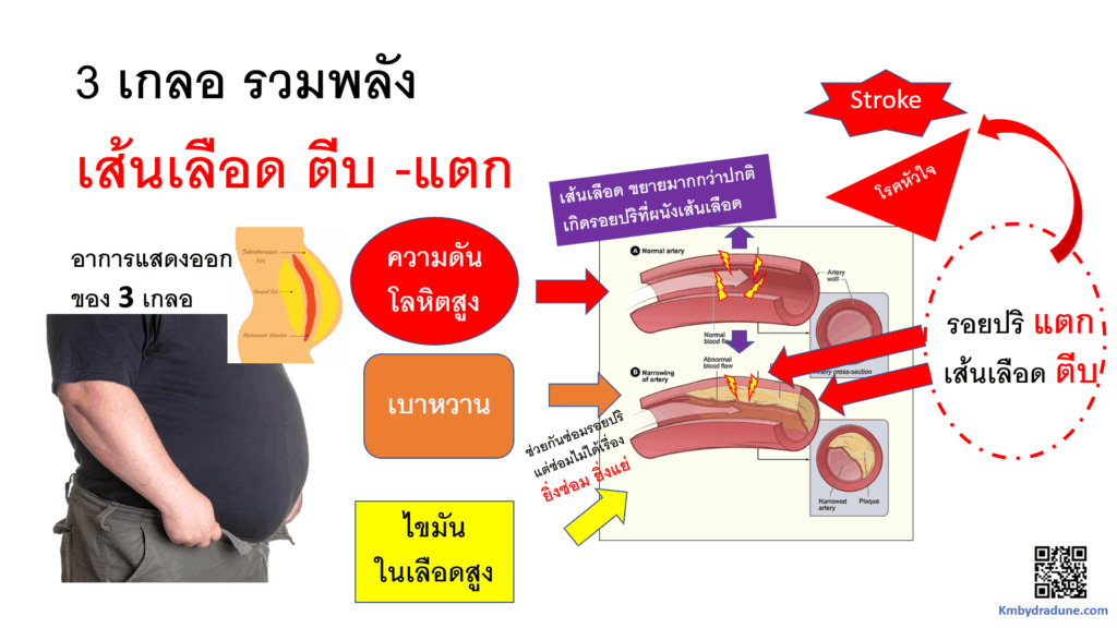 –โรคหลอดเลือดสมอง (stroke) และ โรคหัวใจ เป็นโรคที่น่ากลัว ป่วยเป็นโรคนี้ แล้ว จะมีความเสียหาย หรือยุ่งยากในชีวิตมากมาย … ทั้ง 2 โรคนี้ มีสาเหตุ จาก เส้นเลือดแดง ที่ผิดปกติ … มาดูกันว่า เกี่ยวกับ ความดันโลหิตสูง เบาหวาน และไขมันในเลือดสูง 3 เกลอ รวมพลังกันอย่างไร