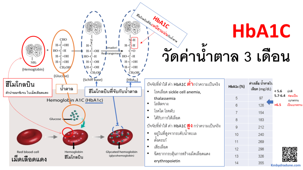 -ทีนี้ ก็ทราบแล้วนะครับ ว่า ทำไม หมอถึงรู้ว่า ในช่วง 3 เดือน ที่ผ่านมา การคุมเบาหวาน หรือ ระดับน้ำตาลในเลือด ของเราสูงไหม … เพราะ ธรรมชาติของเม็ดเลือดแดง ไม่เคยโกหก